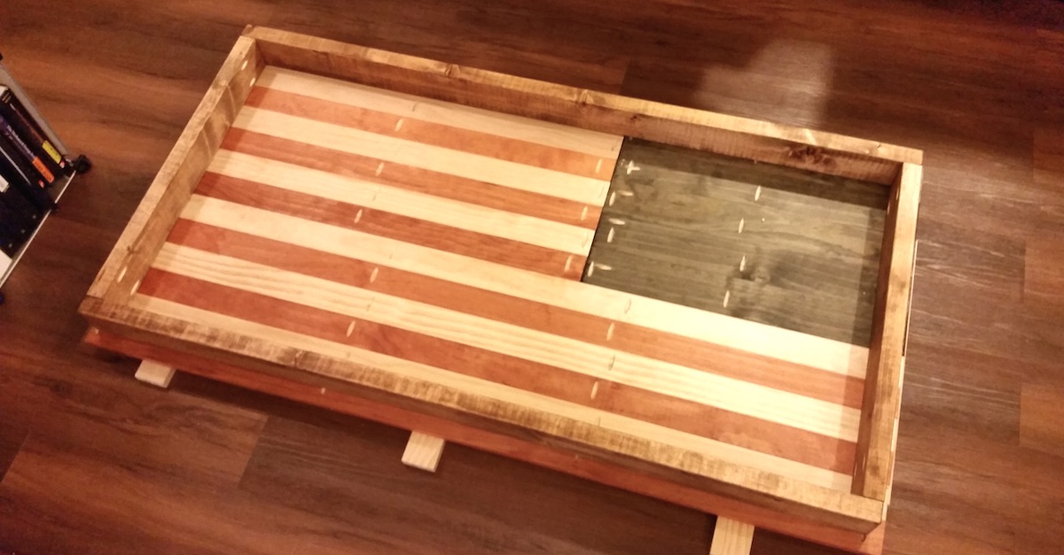 Decorating your dining table is a big part of not only special occasions but also daily life. Shooting for an even smaller, unique design to set out as a table design? Now, this is impressive diy furniture expressing patriotism! Check out this simple, easy to make diy flag table runner! Making an american flag cutting board loxaco inc. Otherwise, find a partner and stand opposite each other at the short ends. I began by simply squaring off one side on the table saw. Ken wingard and paige hemmis team up for this patriotic diy. American flag wood coffee table. Diy patriotic wood flag her tool belt. Free shipping on prime eligible orders. It can be made with a few items purchased from your local lowe's store. Options in colors red and blue faded glory thin blue line firefighter red line american flag pallet coffee table.